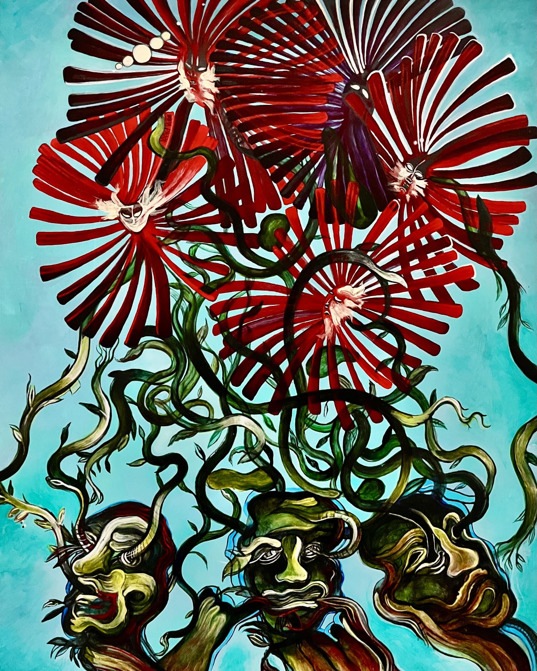 Irina is a Romanian-American self-taught artist whose works explore themes of alienation, freedom, magic, inner worlds, the construction of the self, and the liberation of the self, with inspiration drawn from medieval and renaissance art and fables. Blending her emerging art career with a life of exploration, Irina has painted the portrait of the leader of Tuvalu, created a public works mural in a tribal land in Vanuatu, and exhibited in London, New York, and Seoul.